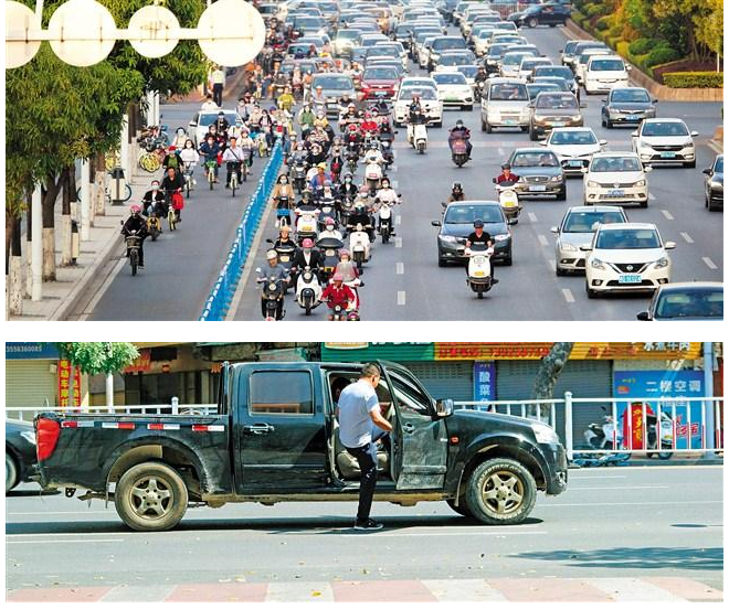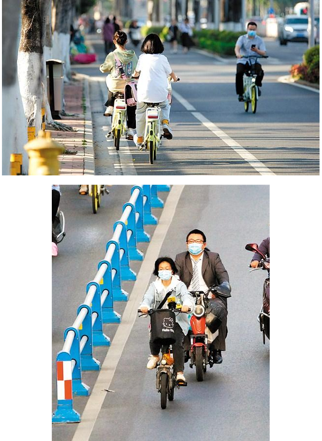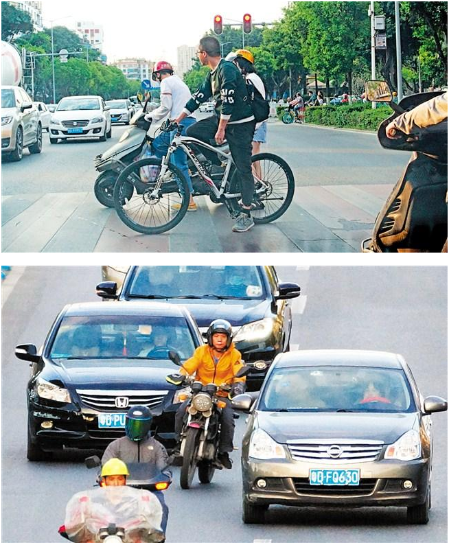 城市馬路設(shè)有自行車(chē)道,能避免電單車(chē)與機(jī)動(dòng)車(chē)“爭(zhēng)搶”,解決大車(chē)小車(chē)混行的交通亂象,緩解高峰期的交通壓力。然而近日記者在市區(qū)多個(gè)路口蹲守發(fā)現(xiàn),為了搶時(shí)間、圖便捷,機(jī)動(dòng)車(chē)駛?cè)搿⒒蚴请S意??吭谧孕熊?chē)道、電動(dòng)車(chē)混入機(jī)動(dòng)車(chē)道的現(xiàn)象時(shí)有發(fā)生,“馬路騎士”一車(chē)多載、闖紅燈、逆行等交通違法行為也頻繁出現(xiàn)。
