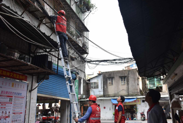 各運營商組織精干隊伍,迅速行動,分工合作,協(xié)同配合,緊緊依托屬地社區(qū),發(fā)揮連續(xù)作戰(zhàn)精神,逐一攻堅克難。隨后,金平區(qū)工信局組織各運營商到光華街道火車頭社區(qū)、小公園街道紅亭社區(qū)、金砂街道東門社區(qū)、石炮臺街道新陵海市場、東方街道中山東市場等五個首批重點區(qū)域進行現(xiàn)場踏勘并制訂方案,區(qū)域分工,組織進場整治。