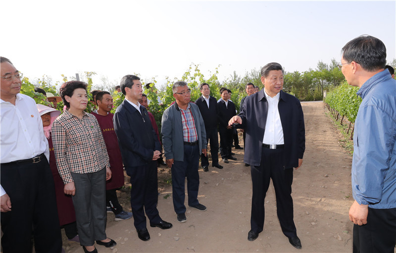 這是6月9日下午,習近平在銀川市西夏區(qū)葡萄種植基地,同工人和技術(shù)人員交流。新華社記者 鞠鵬 攝