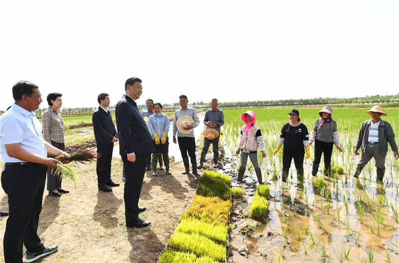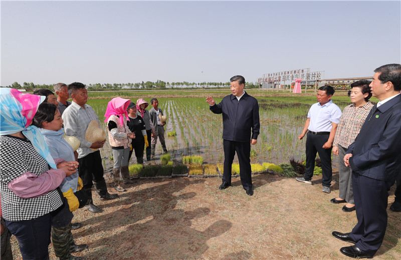 這是6月9日下午,習近平在銀川市賀蘭縣稻漁空間鄉(xiāng)村生態(tài)觀光園,了解寧夏現(xiàn)代農(nóng)業(yè)發(fā)展和特色農(nóng)產(chǎn)品情況。新華社記者 鞠鵬 攝
