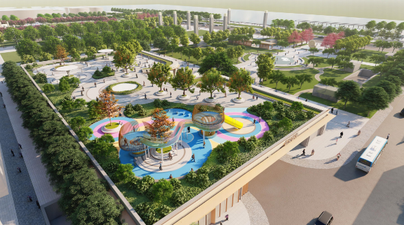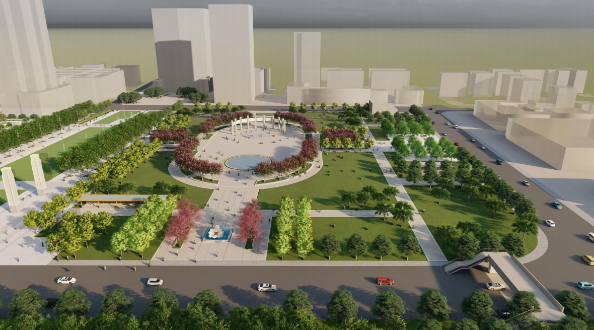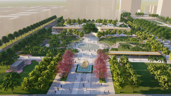 改擴(kuò)建工程將保留人民廣場原場地,重新梳理場地空間,營造舒適的林下休憩場所;將原文化宮用地打造成社區(qū)休閑場地,與右側(cè)人民廣場和諧呼應(yīng);打造三條南北向縱軸。