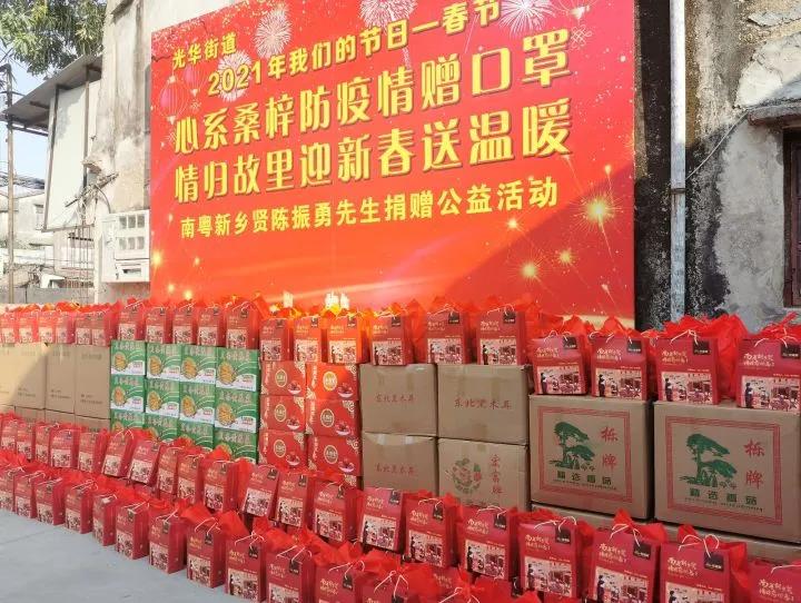 1月17日上午,金平區(qū)光華街道組織開展“心系桑梓防疫情贈口罩,情歸故里迎新春送溫暖——南粵新鄉(xiāng)賢陳振勇先生捐贈公益活動”,為轄區(qū)的“厝邊頭尾”送來防疫和過節(jié)物資,讓居民群眾過上一個暖意濃濃、平安健康的新春佳節(jié)。本次活動共發(fā)放年貨禮包1600份和防疫口罩10萬個,總價值超過人民幣70萬元。為防止人員聚集,物資發(fā)放將由屬地居委分批送上門或群眾自行領(lǐng)取。