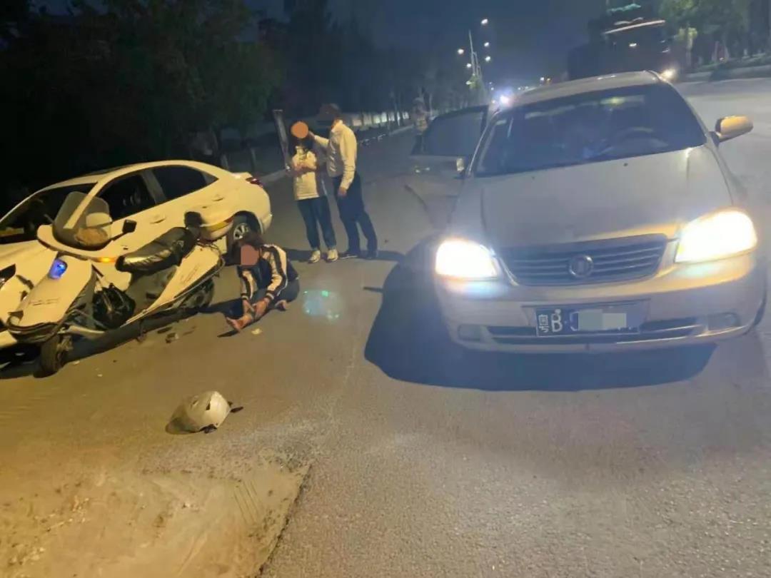 “警示牌呢?快把三角警示牌放在車后方!”見此情景,民警和輔警立刻靠邊停車、保護(hù)現(xiàn)場(chǎng),并對(duì)摩托車駕駛員開展救護(hù),同時(shí)撥打120急救電話。