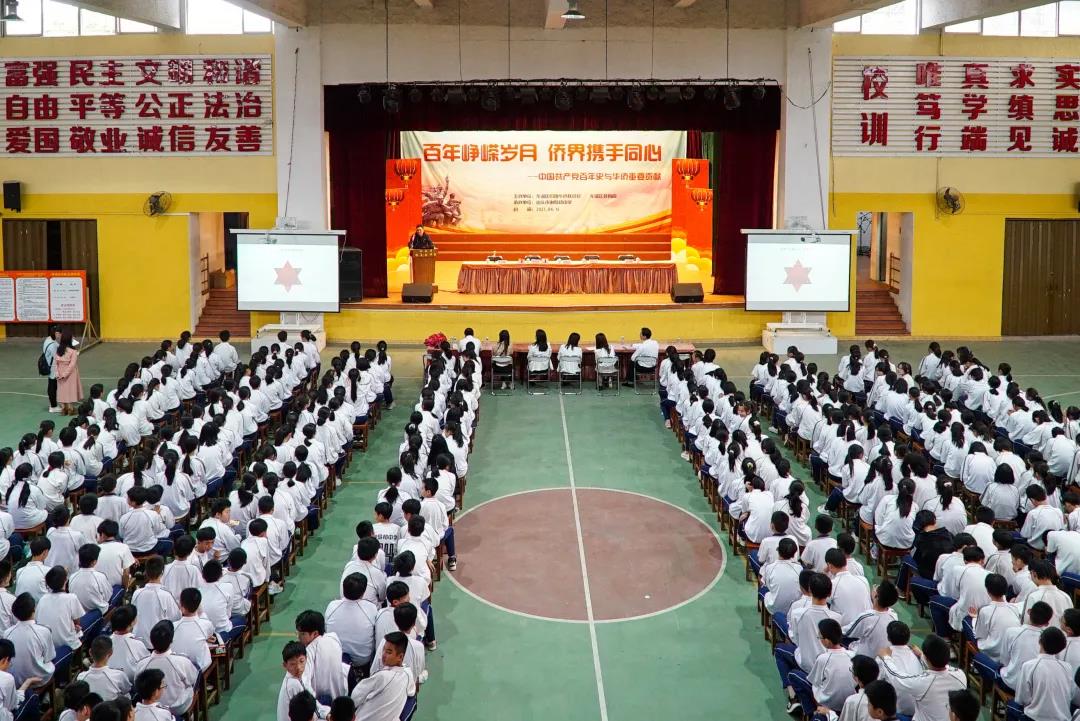4月16日下午,龍湖區(qū)僑聯(lián)聯(lián)合區(qū)教育局在謝易初中學(xué)舉辦了一場以“百年崢嶸歲月 僑界攜手同心”為主題的黨史學(xué)習(xí)教育進(jìn)校園活動(dòng),通過黨史僑史書畫展、愛國華僑事跡分享會(huì)、主題講座等形式,把華僑愛國史融入黨史教育中,區(qū)僑聯(lián)還向現(xiàn)場的學(xué)生們贈(zèng)送了一批黨史僑史書籍,引導(dǎo)學(xué)生們以學(xué)習(xí)黨史僑史為契機(jī),知史愛黨,知史愛國,感悟華人華僑的赤子之心和愛國愛鄉(xiāng)的精神,增強(qiáng)民族自豪感和文化自信心。區(qū)僑聯(lián)、區(qū)教育局有關(guān)負(fù)責(zé)人以及謝易初中學(xué)師生四百多人參加了活動(dòng)。