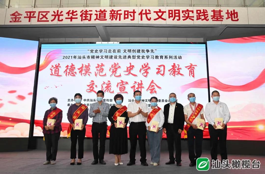 4月29日,由市委宣傳部、市文明辦主辦,金平區(qū)新時代文明實(shí)踐中心、金平區(qū)委宣傳部、區(qū)文明辦承辦,光華街道黨工委、金平區(qū)光華街道新時代文明實(shí)踐所協(xié)辦的“黨史學(xué)習(xí)走在前?文明創(chuàng)建我爭先”——2021年市精神文明建設(shè)先進(jìn)典型黨史學(xué)習(xí)教育系列活動之“道德模范黨史學(xué)習(xí)教育交流宣講會”在光華街道新時代文明實(shí)踐基地舉行。