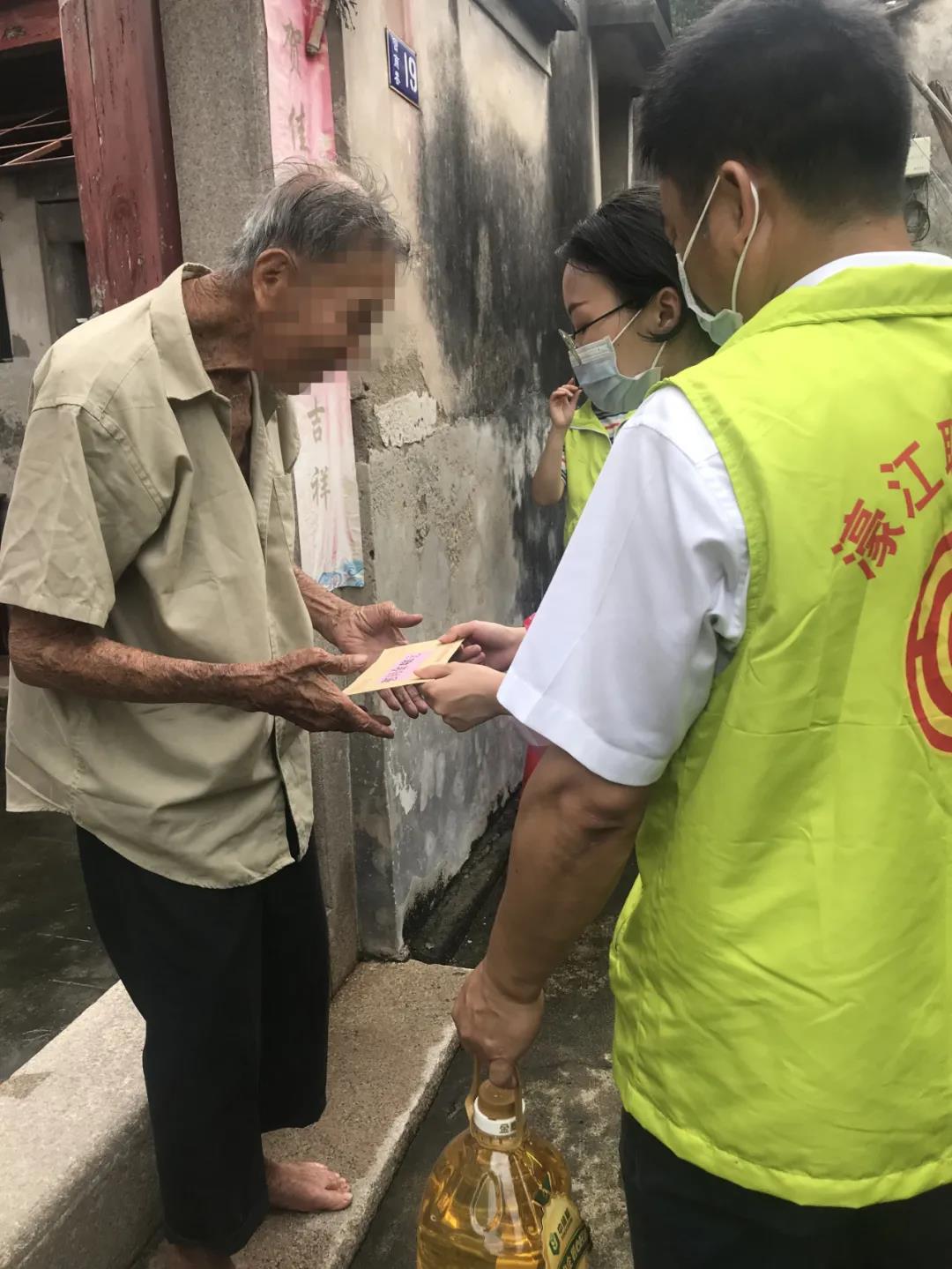 走訪過程中,志愿者們冒雨前行,在社區(qū)工作人員的帶領(lǐng)下上門入戶對(duì)社區(qū)內(nèi)的孤寡老人進(jìn)行了慰問。在老人們的家中,熱心的志愿者們與他們親切交流,詳細(xì)詢問了老人們的身體情況和生活近況,叮囑他們保重身體,有需要及時(shí)通過社區(qū)干部向協(xié)會(huì)反映,并現(xiàn)場(chǎng)向老人們送上了共計(jì)12000元的節(jié)日慰問金及粽子、大米、食用油等慰問物資,讓老人們心有慰藉的同時(shí),可以提前感受端午節(jié)的傳統(tǒng)文化氛圍。
