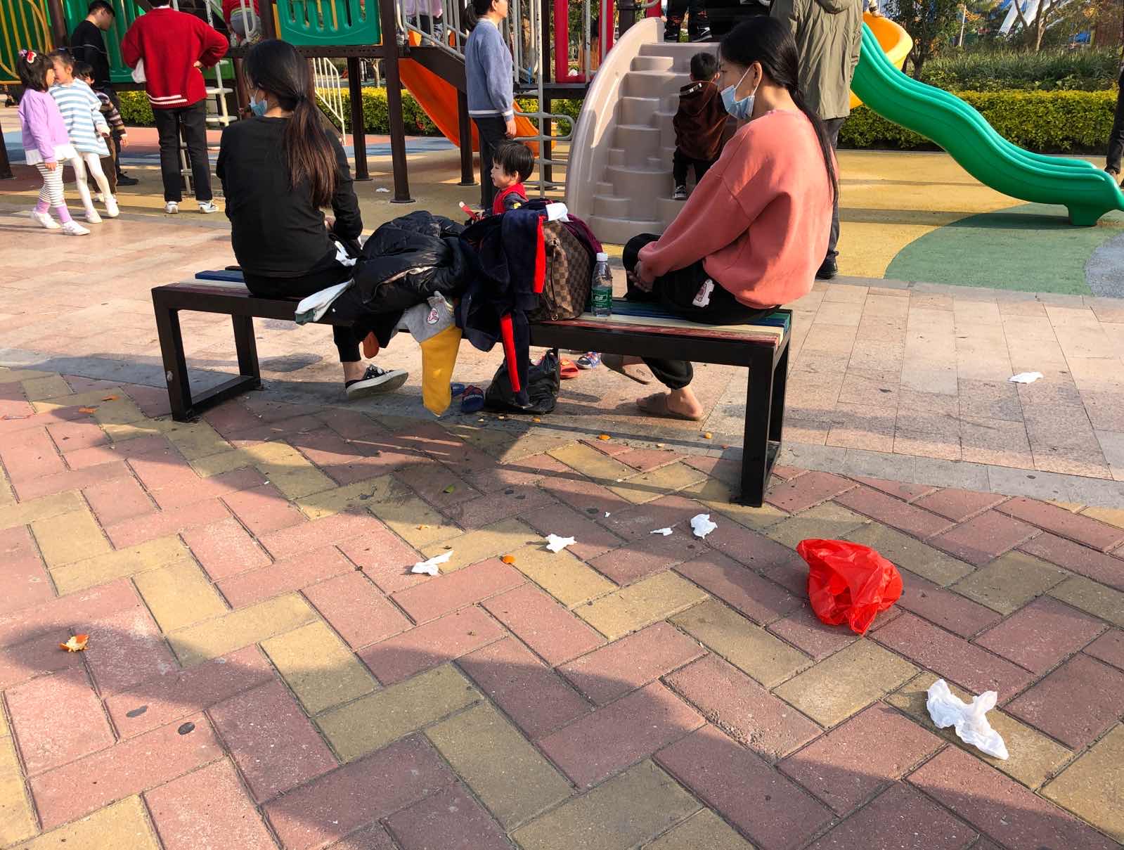 在兒童公園,入口處有保安正在實施登記游客信息、落實測溫等防疫措施,園區(qū)秩序較好。但仍有多處地面有垃圾落地,草坪、綠化帶中的垃圾未及時清理。有游客隨地丟果皮、紙屑等垃圾,文明意識有待加強(qiáng)。