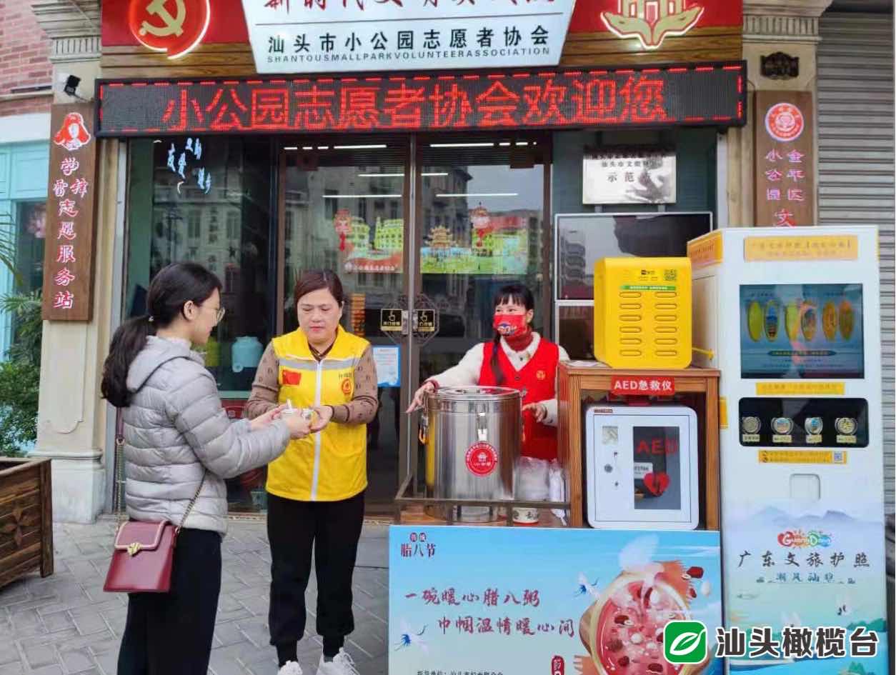 早上八點(diǎn),在小公園新時(shí)代文明驛站門(mén)口,熱氣騰騰的臘八粥散發(fā)著特有的香味,志愿者免費(fèi)向市民、游客贈(zèng)送臘八粥?,F(xiàn)場(chǎng)還提供免費(fèi)贈(zèng)送春聯(lián)、測(cè)量血壓血糖等志愿服務(wù)。一碗碗香濃的臘八粥,傳承著醇厚的中華民俗內(nèi)涵。