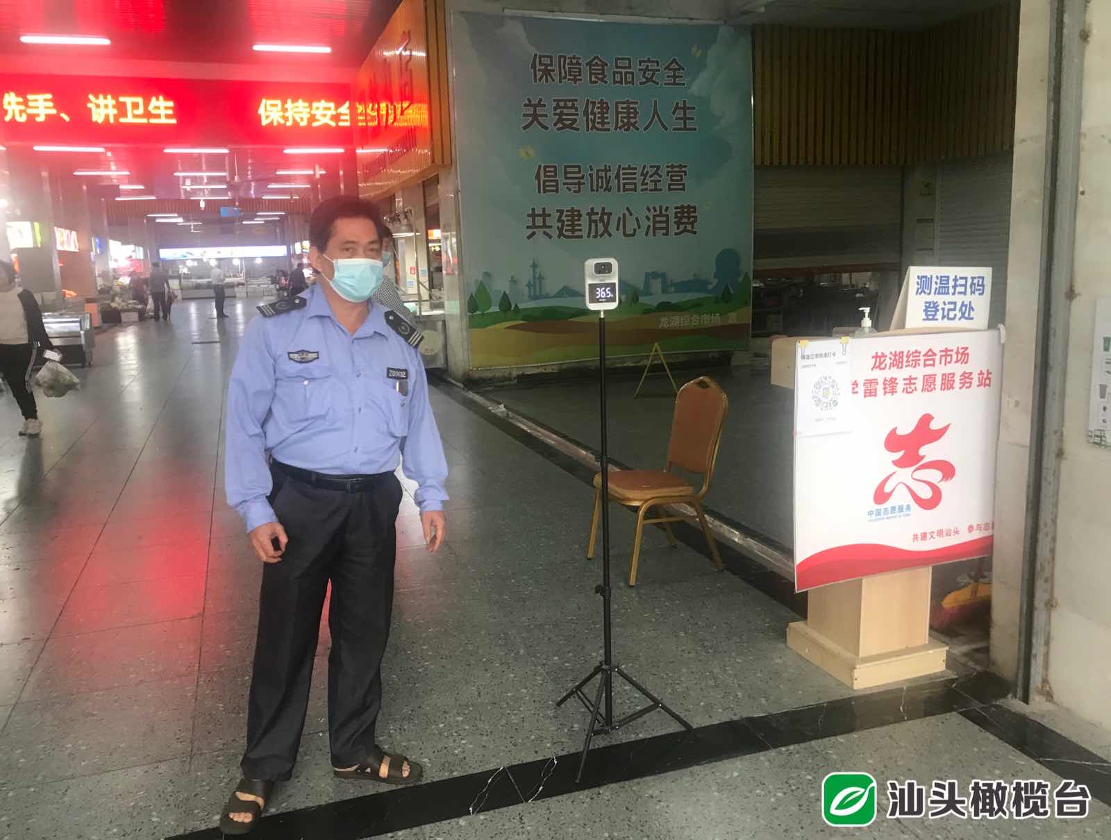 ▼在珠池街道龍湖綜合市場,督查組看到,該市場總體秩序良好,入口處有安保人員進行檢查和測量體溫。