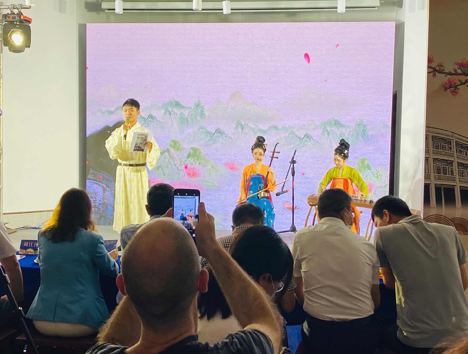 活動(dòng)同時(shí)也對(duì)我市首屆“僑鄉(xiāng)墨韻 詩(shī)詞廻瀾”文化節(jié)進(jìn)行集中展示。據(jù)悉,從8月15日至9月10日,主辦方共向各區(qū)(縣)、各相關(guān)單位及海外潮團(tuán)征集“僑鄉(xiāng)墨韻詩(shī)詞廻瀾”詩(shī)詞原創(chuàng)作品及展演節(jié)目51件,其中,吟誦作品1件,歌謠作品1件,繪畫11件,詩(shī)詞30件,書法8件?;顒?dòng)中,主辦方選取了部分作品進(jìn)行集中展示?!洞航ㄔ乱埂贰端{(diào)歌頭?明月幾時(shí)有》詩(shī)歌朗誦,《鵲橋仙?僑韻汕頭》原創(chuàng)詩(shī)詞朗誦+古箏、二胡伴奏,舞蹈《秀水伊人》等精彩節(jié)目獲得陣陣掌聲。
